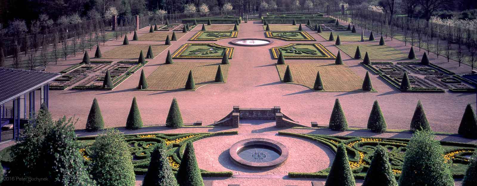 1998 Vorfrühling: Blick auf den Pleasureground vom Kloster herunter, Kloster-Kamp, Kamp-Linfort, Niederrhein, NRW Bildentstehung: