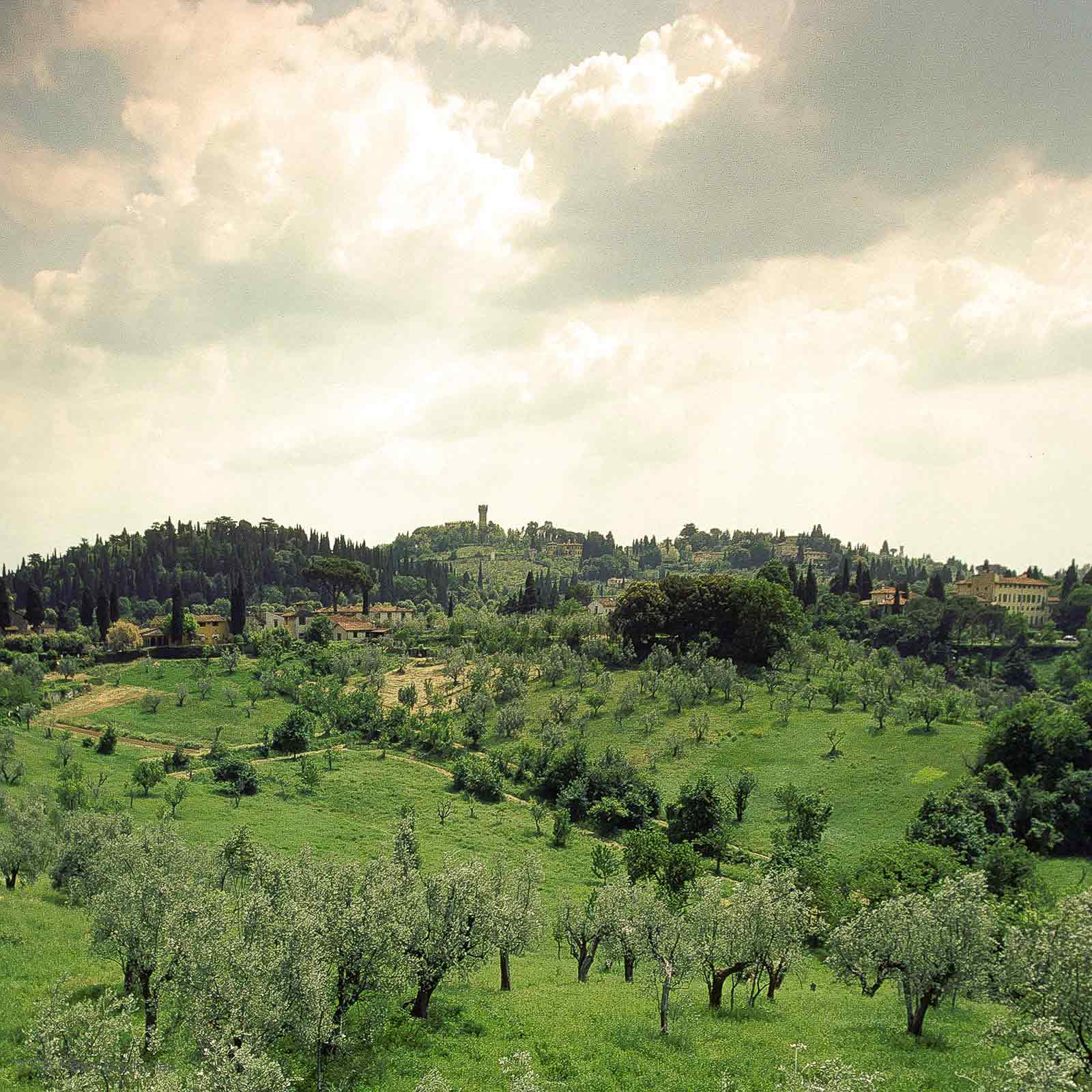 1998: Florenz, Blick vom Boboli -Giardino di Boboli- auf die Toscana-Landschaft, Italien Bildentstehung: